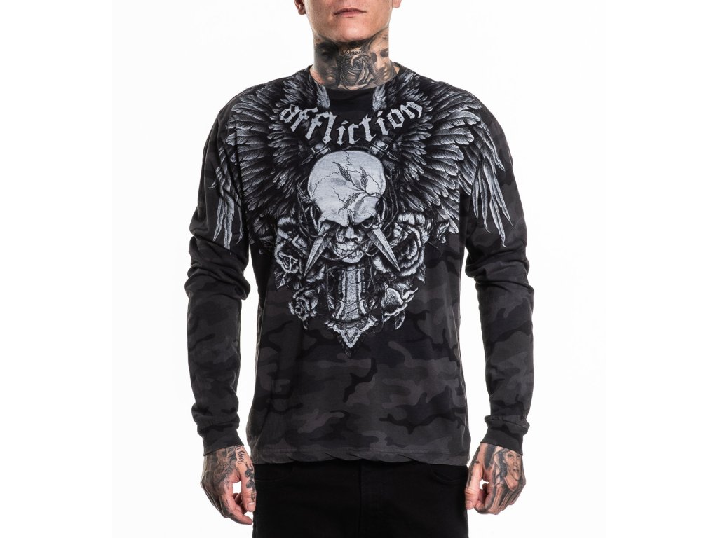 Affliction Crossed Over tričko dlouhý rukáv - černá kamufláž