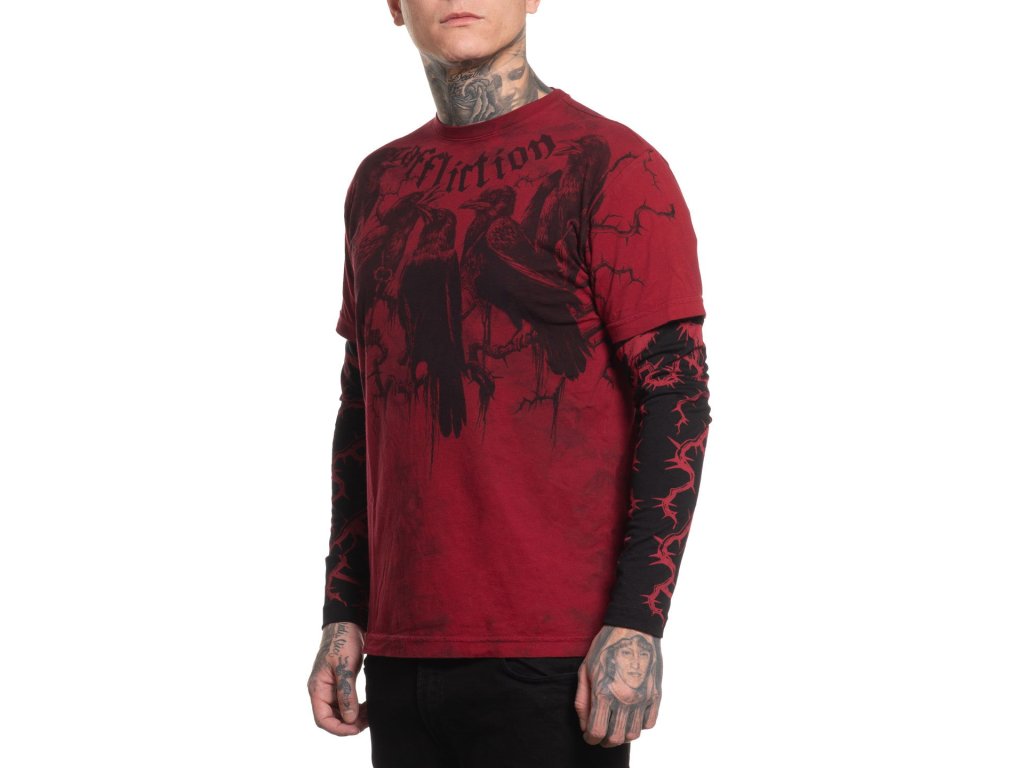 Affliction Crows 2FER tričko dlouhý rukáv - červeno/černé