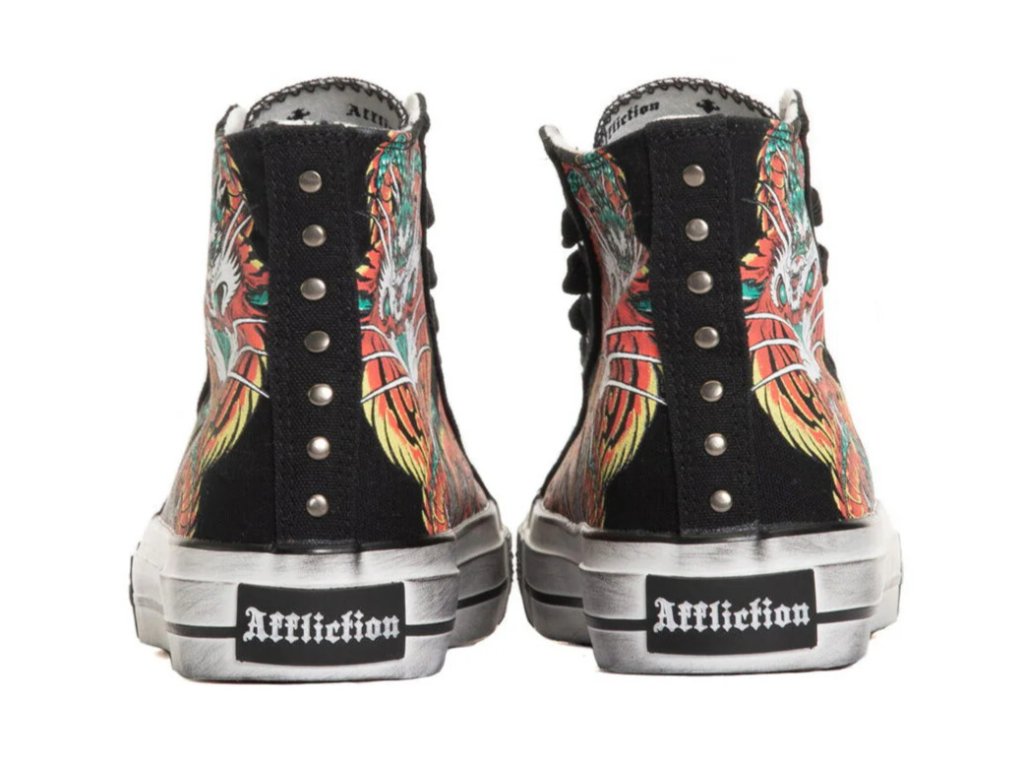 Affliction i dnes zůstává věrná své původní vizi – vytvářet skutečně originální, umělecké oblečení, které zpochybňuje normy a inspiruje odvážné.