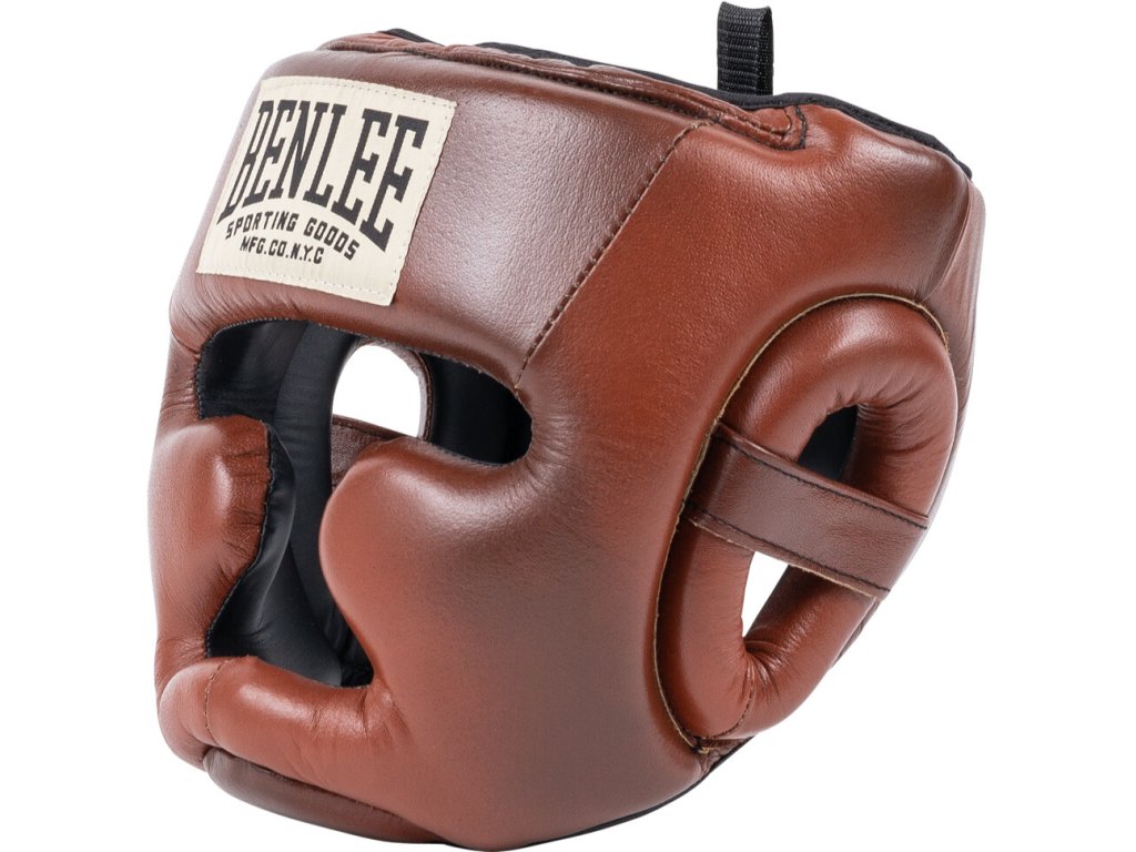 Prémiový kožený chránič hlavy od značky BENLEE má polstrované čelo a lícnice pro optimální ochranu. Klasické šněrování nahoře a široké zapínání na suchý zip na týlu umožňují dokonalé individuální přizpůsobení. Vzhled ve stylu "old style" se inspiruje klasikou z dřívějších let.