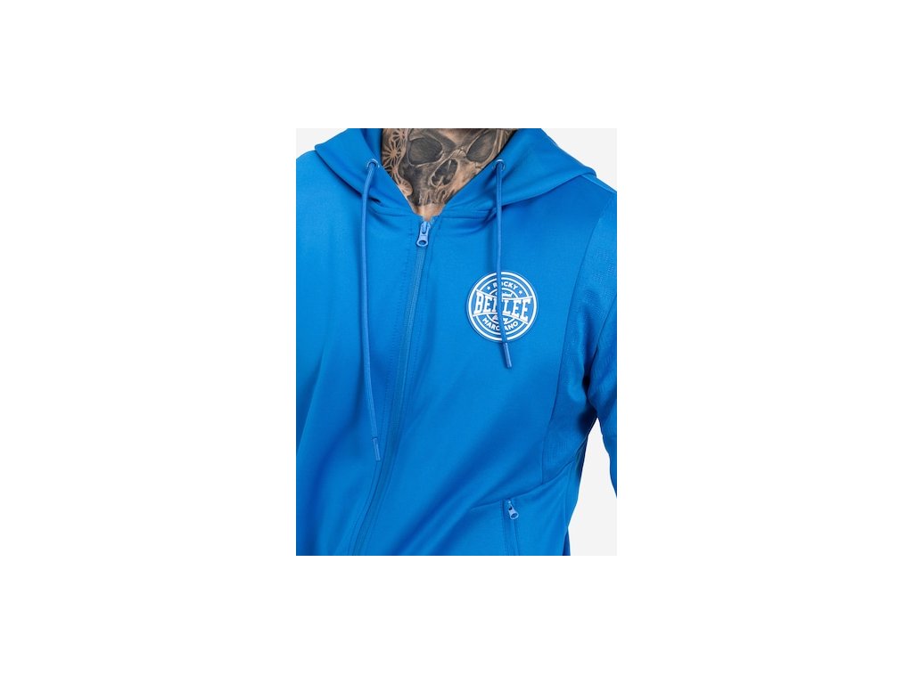 Tato stylová dvoudílná souprava nabízí celopropínací zip, kapuci s nastavitelnou šňůrkou a elastický pas i okraje pro maximální pohodlí. Boční kapsy na zip zajišťují bezpečné uložení drobností a nášivka s logem dodává decentní značkový detail. Švy v tónu látky podtrhují čistý a jednotný vzhled.