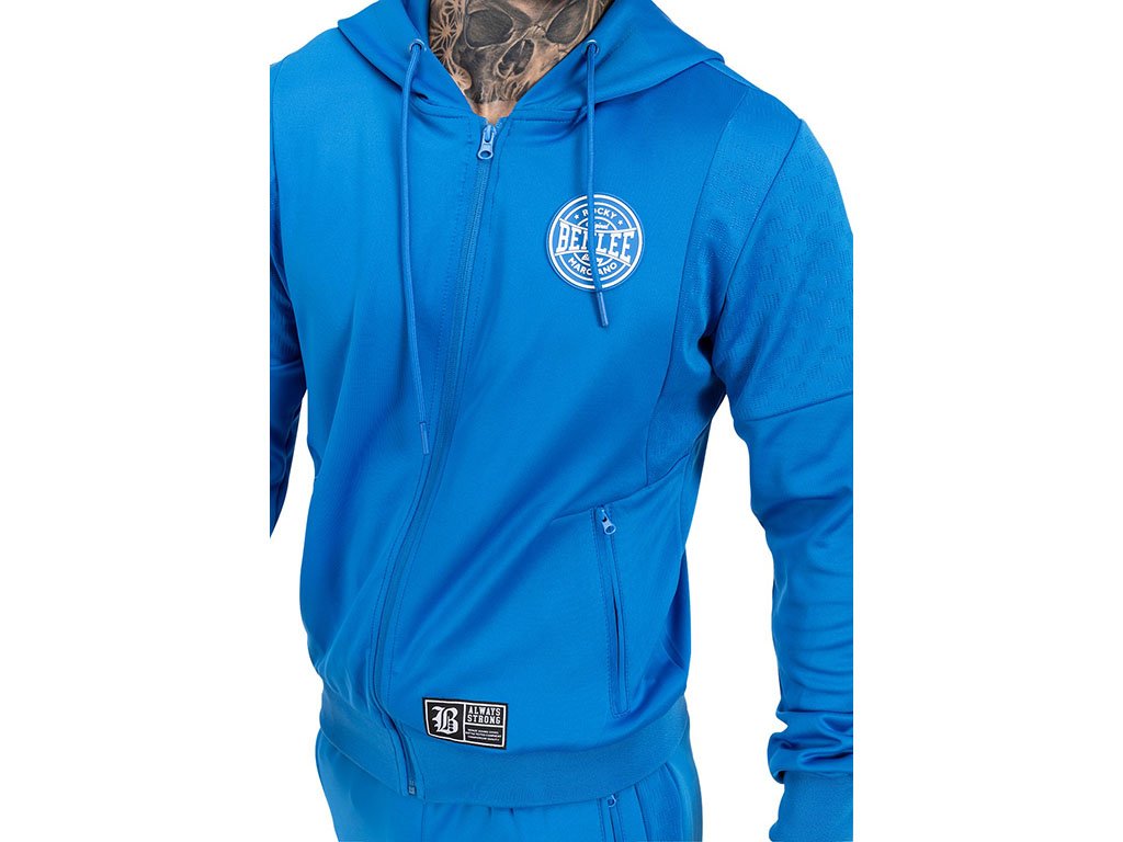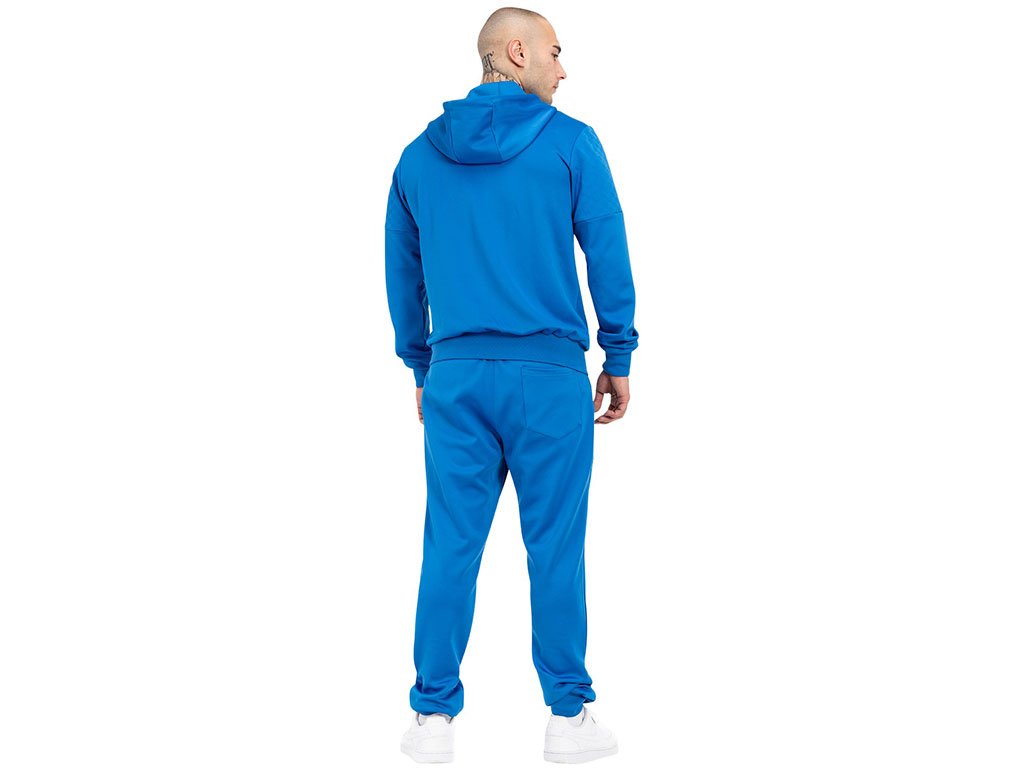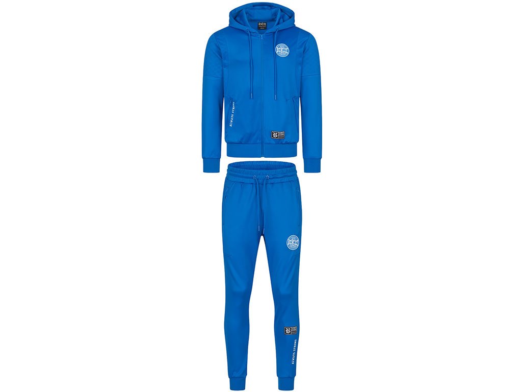 Tato stylová dvoudílná souprava nabízí celopropínací zip, kapuci s nastavitelnou šňůrkou a elastický pas i okraje pro maximální pohodlí. Boční kapsy na zip zajišťují bezpečné uložení drobností a nášivka s logem dodává decentní značkový detail. Švy v tónu látky podtrhují čistý a jednotný vzhled.