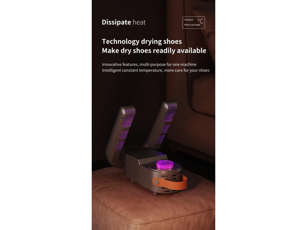 Praktická sušička na boxerské rukavice a obuv. Sušička je určena k celoročnímu použití, pro fyzicky aktivní lidi, kteří sportují. Hodí se také pro lidi, kteří mají problémy se zvýšeným pocením nohou nebo pro sušení bot po dešti či sněhu. Dvě sklopná ramena umožňují pohodlné sušení nejen bot, ale i ponožek a rukavic. Sušička je vybavena pohodlným časovačem s možností volby doby provozu. Výrobek je bezpečný pro obuv a oděvy a je zahřátý na teplotu přibližně 48 stupňů Celsia.
