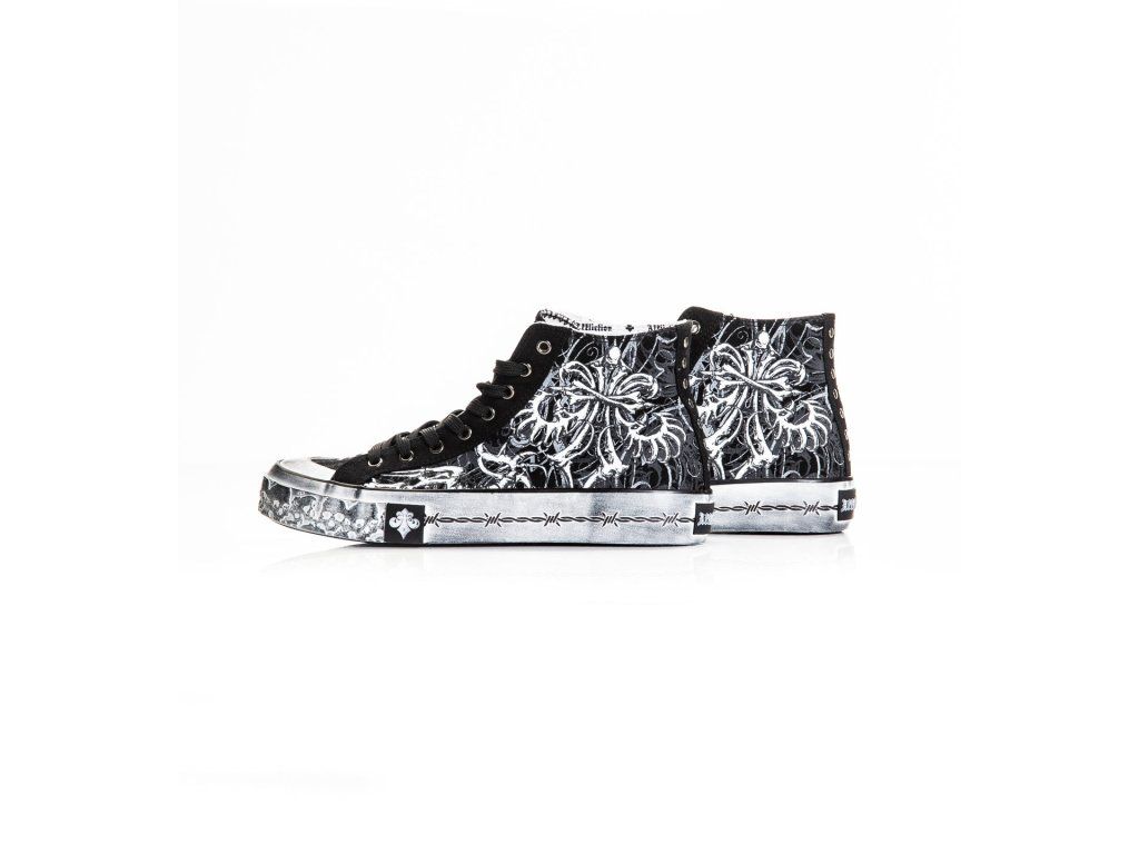 Affliction Skeleton Hi-Top shoes combine durable canvas construction, a comfortable high-top fit, and bold skeleton-inspired signature Affliction styling.