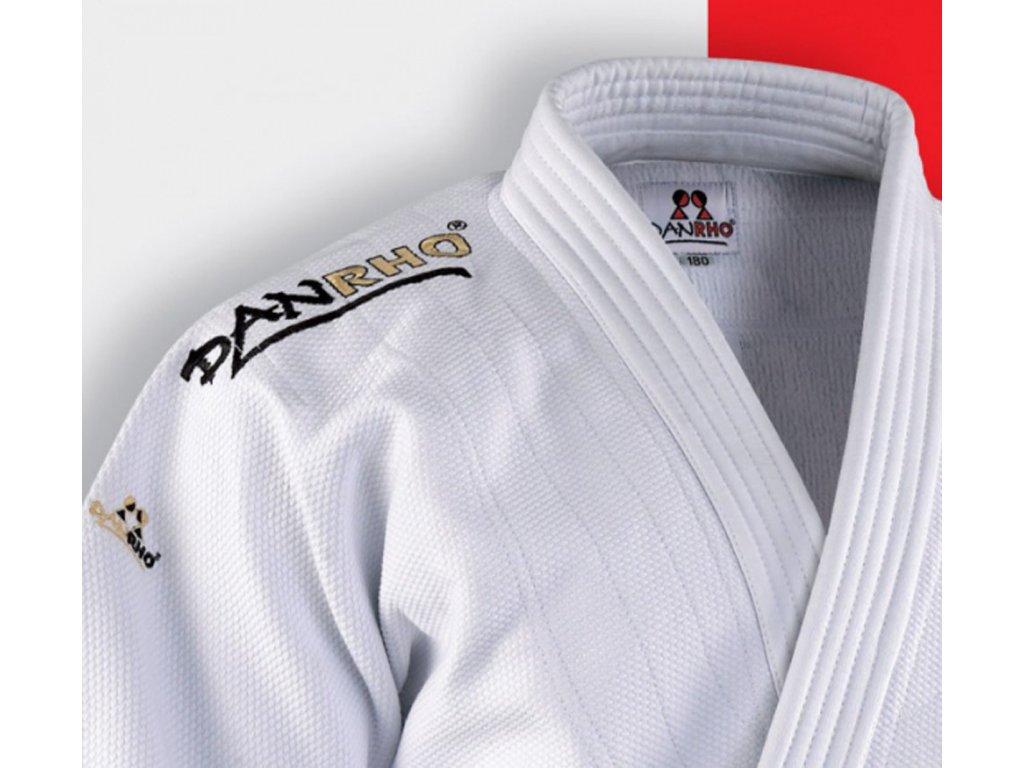 The Danrho Kano is a competition judo gi designed for demanding training and tournament use. The jacket is made from 100% cotton with a weight of 850 g/m², providing durability and comfort.