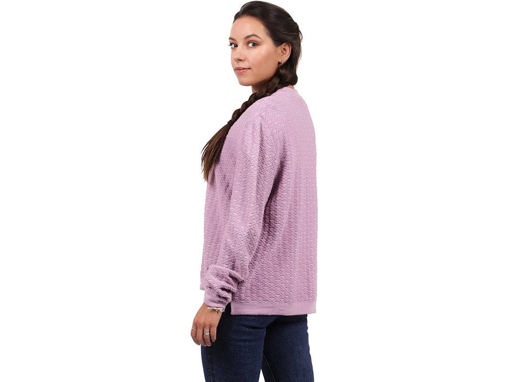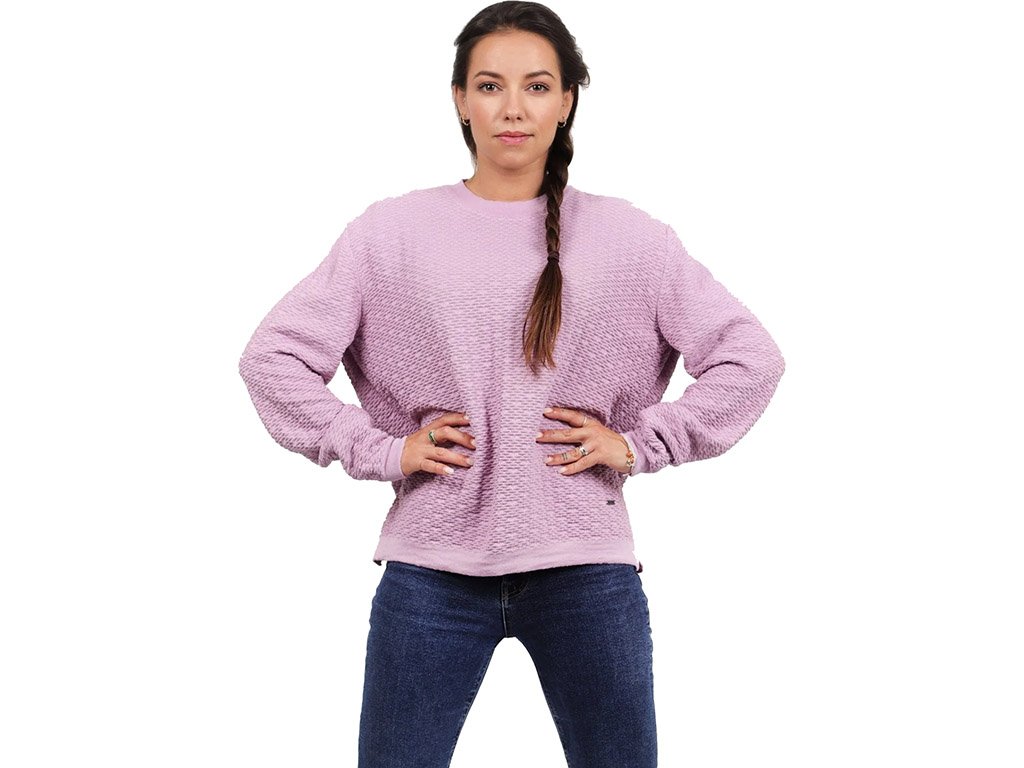 A stylish women’s sweater you’ll fall in love with from the very first wear. The solid color is enhanced by an original textured knit pattern and a relaxed fit that offers comfort in any situation. Subtle side slits and neatly finished cuffs and hem add a touch of elegance.