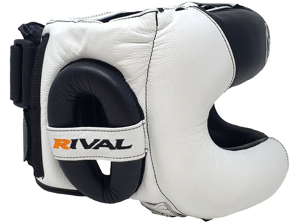 A fully adjustable circular lace on the top and bi-directional hook-and-loop straps at the rear ensure a secure, customized fit. The extra-wide eye opening allows for outstanding forward and peripheral vision, so you can stay aware and react quickly in the ring. A metal chin strap buckle adds strength and reliability, ensuring years of professional-level use. The padded rabbit-punch protector offers additional safety to the back of the head.