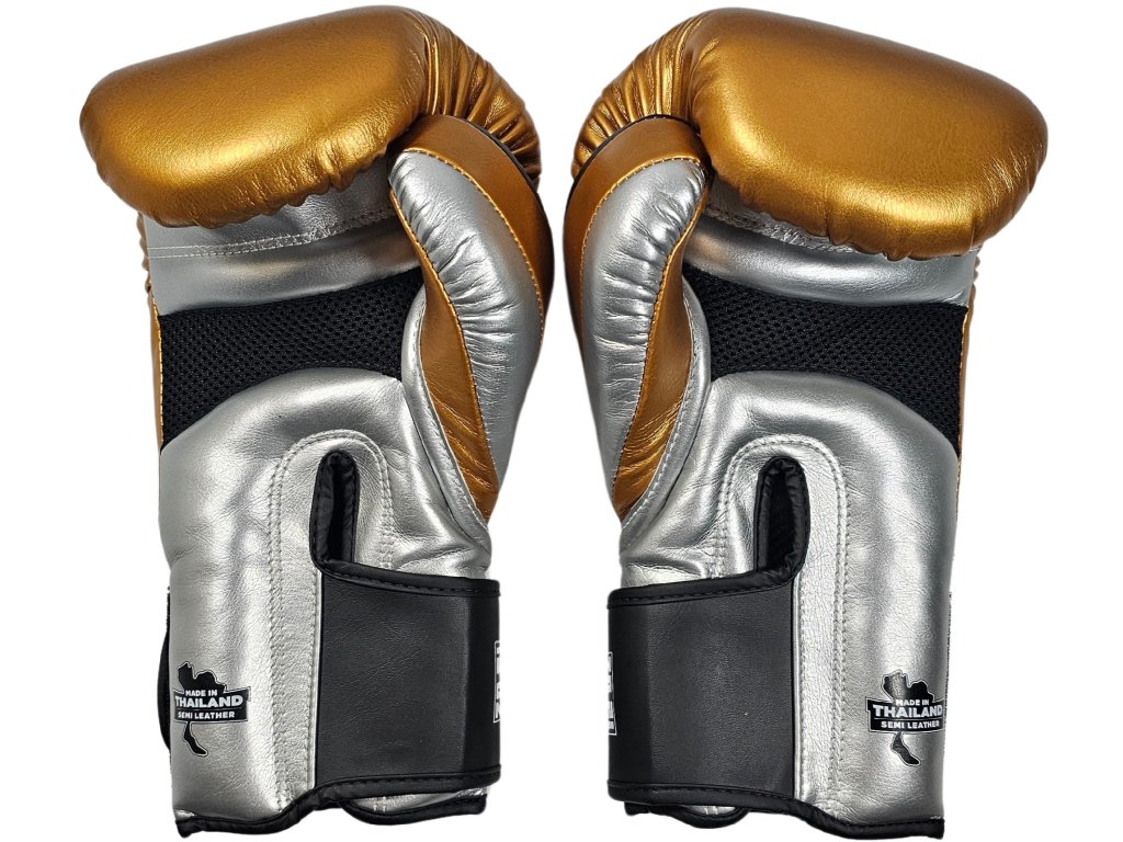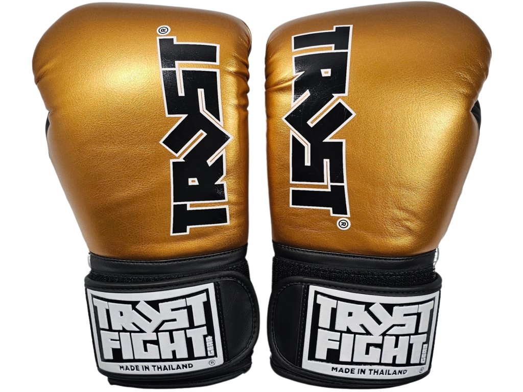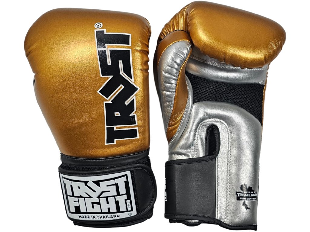 Semi-leather boxing gloves from the Thai brand Trust Fight. Layered foam reinforcement for excellent impact absorption.