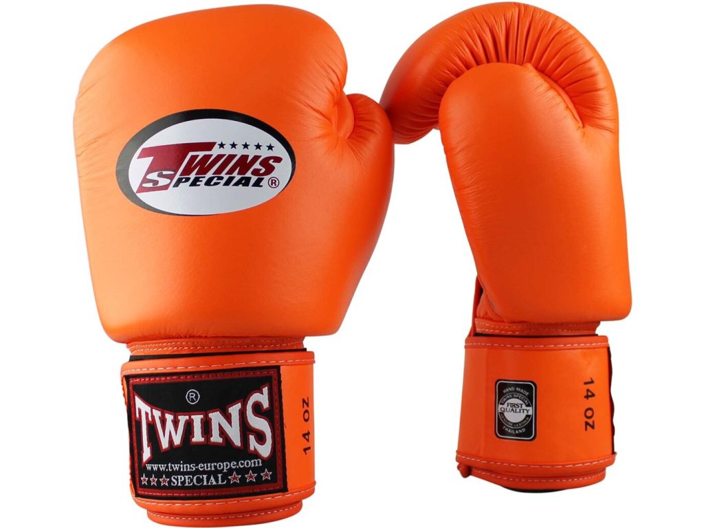 Boxing gloves Twins Special BGVL3 - orange are handmade in Thailand. The Twins boxing gloves fit perfectly on the hand thanks to their original cut. The foam construction of the padding, the thumb fastening and the wide Velcro closure guarantee maximum protection.