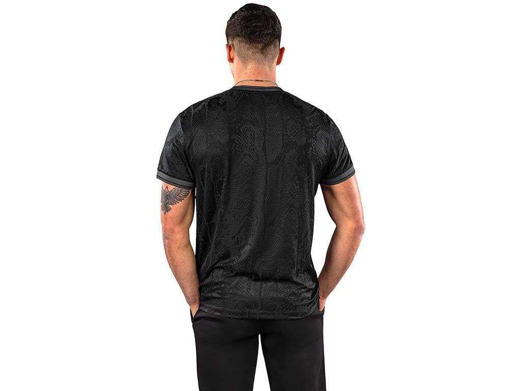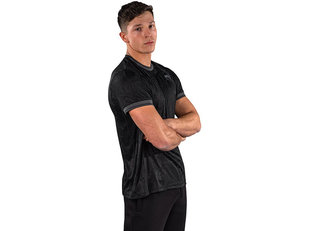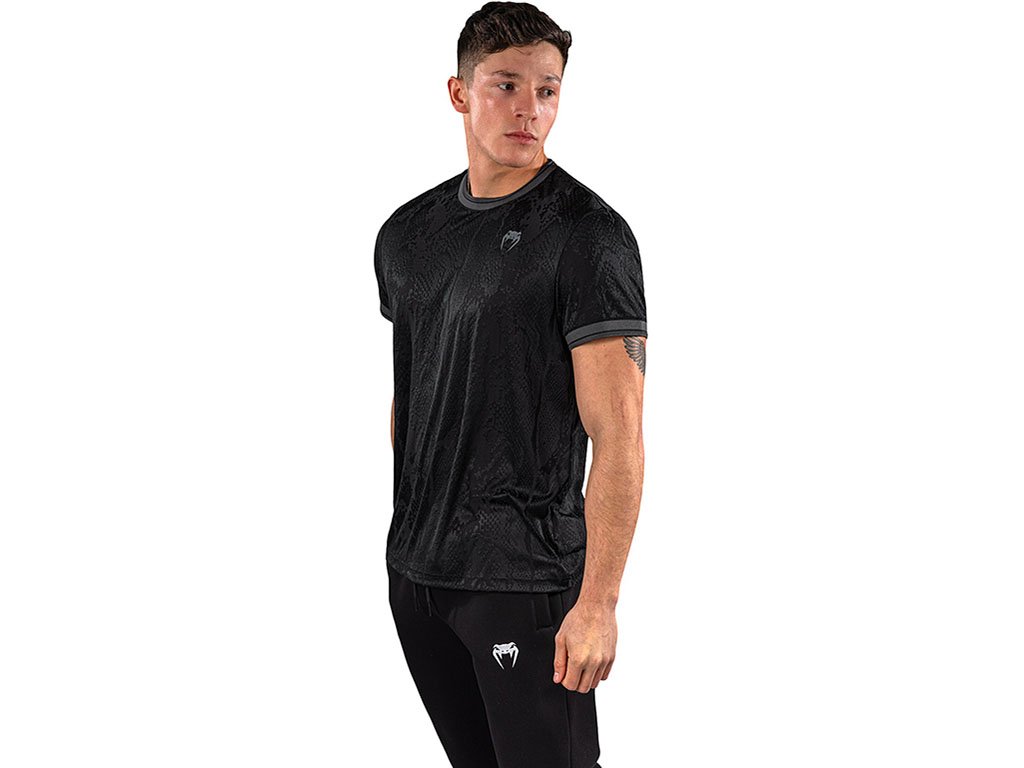 The Venum Aegis Dry Tech T-Shirt is crafted from high-performance fabric, providing comfort and moisture management during training and daily activities. A subtle jacquard weave creates a stylish snakeskin effect across the body. The elasticated short sleeves feature a contrasting color to match the Venum logo on the chest.