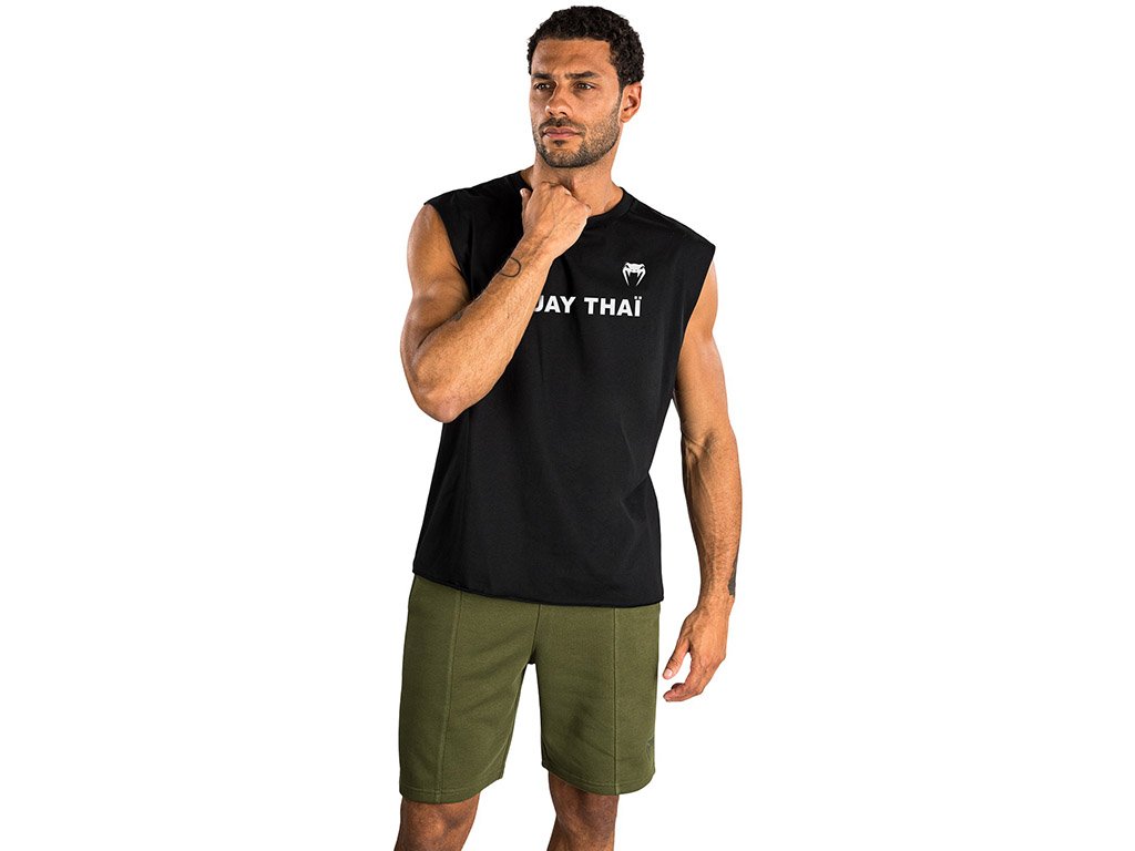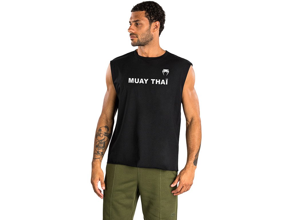 The Venum Muay Thai VT Sleeveless T-Shirt is a regular-fit men’s crew neck shirt, perfect for training or casual wear. Made from a premium cotton blend, it offers excellent comfort and breathability. The drop-shoulder construction and raw hem give the shirt a sporty yet relaxed look, suitable for both athletes and fans of Muay Thai.
