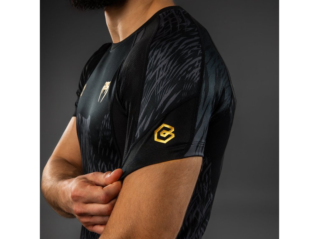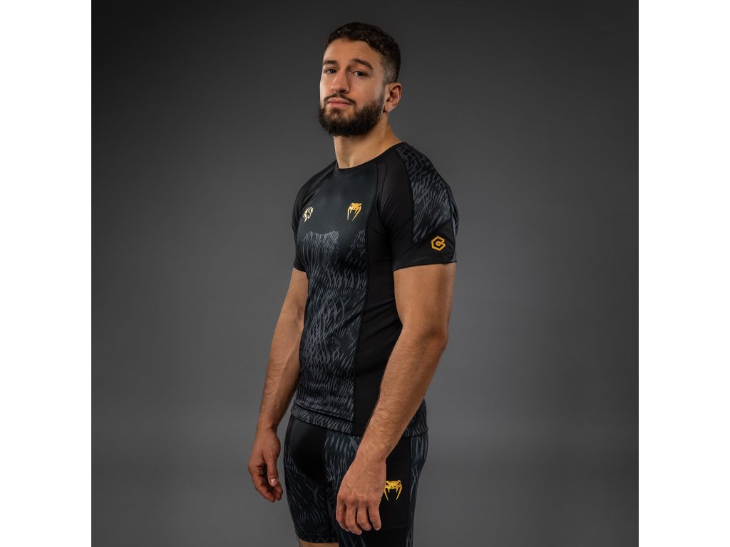 The Venum x Chimaev Short Sleeve Rashguard is built for grappling, BJJ, and MMA. It offers protection against rashes, burns, and abrasions, while ensuring full freedom of movement during both striking and groundwork. Its “second-skin” compressive fit provides muscular support during intense training sessions and can also assist in recovery.