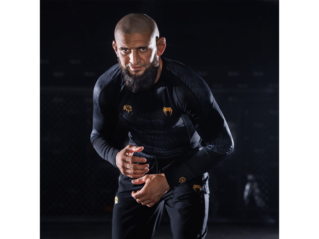 Inspired by the spirit of the wolf (“Borz” in Chechen), the Venum x Chimaev collection channels Chimaev’s relentless drive into high-performance fightwear. With its sleek black-grey-gold palette and technical materials, this range of fightwear, footwear, and lifestyle apparel is built to endure the daily grind of elite training.