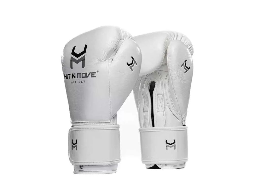 HIT N MOVE ALL DAY® PRO AGILITY BOXERSKÉ RUKAVICE HOOK AND LOOP - BÍLÉ