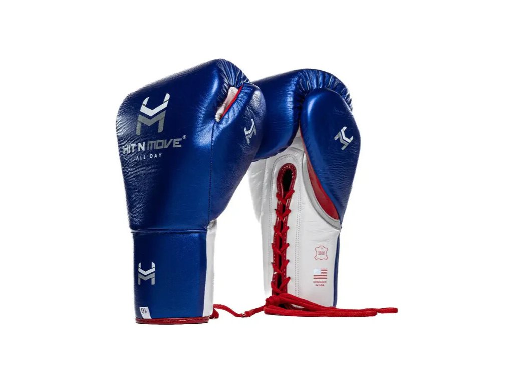 HIT N MOVE All Day® Pro Agility šněrovací boxerské rukavice - metal.modrá/bílá