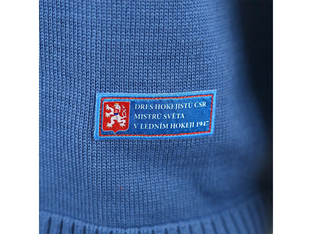 Na základě přání našich zákazníků jsme vytvořili novou verzi dresu s menším znakem na srdci. Tento pletený retro dres československého hokejového týmu z MS 1947 je věrnou replikou dresů, ve kterých naše reprezentace vyhrála zlatou medaili. Dres je upleten z kvalitní směsové příze Merino vlna/akryl a na prsou je vyšívaný státní znak ČSR z roku 1947. Dres má unisex střih a je dostupný ve velikostech S–XXXL. Vyrábí česká rodinná firma KAMA.