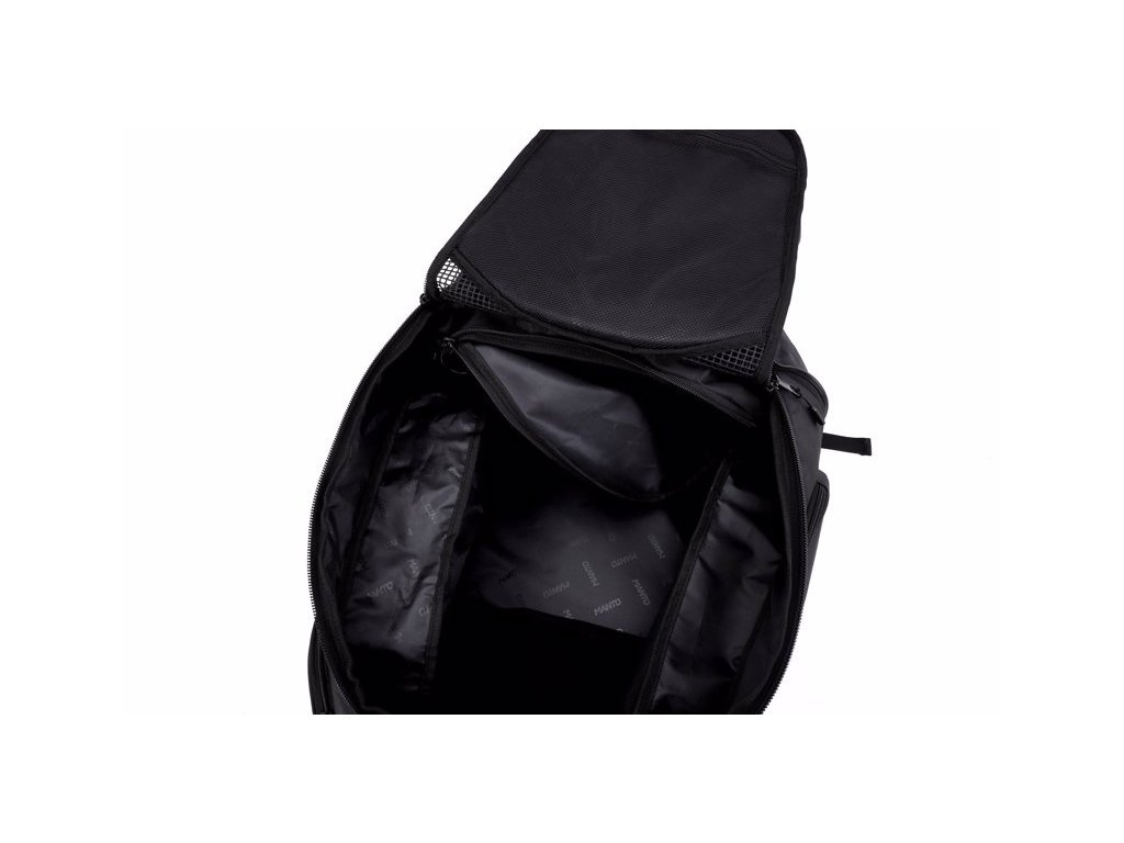 Extra velký sportovní batoh MANTO je všestranný a prostorný. Snadno se přeměňuje na tašku. Disponuje velkou přední přihrádkou, odvetrávanou přihrádkou na mokré oblečení, dvěma bočními kapsami, jednou horní kapsou a reflexními potisky pro větší bezpečnost. Vyroben z odolného 100% polyesteru.