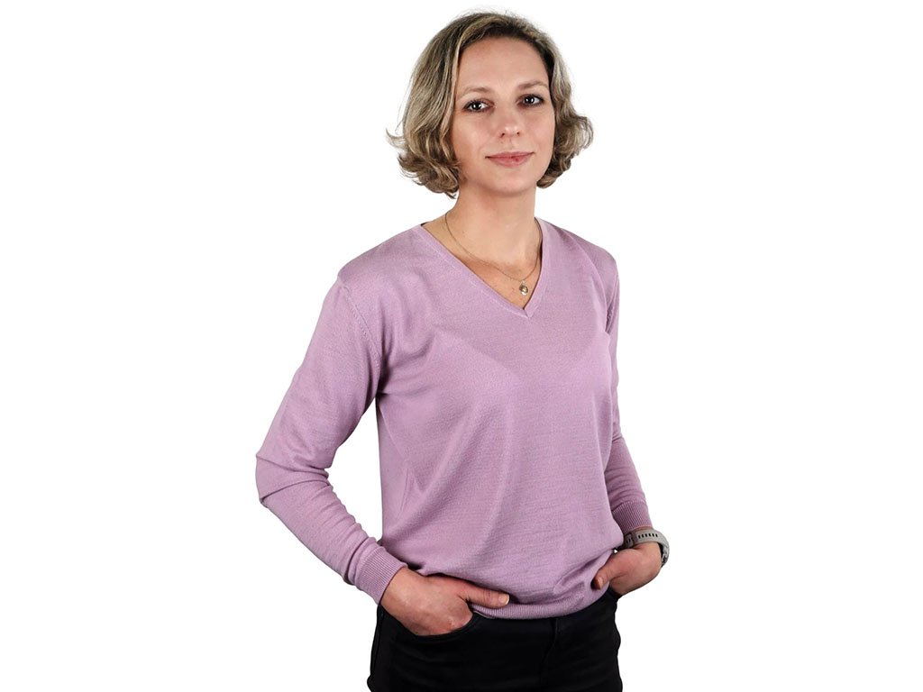 Náš klasický tenký dámský svetr z jemné Merino vlny s výstřihem do V je lehký, pohodlný a ideální pro celoroční nošení. Jemný úplet zajišťuje perfektní padnutí pod sako, ale svetr skvěle vynikne i samostatně. Přirozené vlastnosti Merino vlny poskytují výbornou termoregulaci a efektivní odvod vlhkosti, takže se budete cítit příjemně po celý den. Nadčasový jednobarevný design se snadno kombinuje s ležérními i formálními outfity.