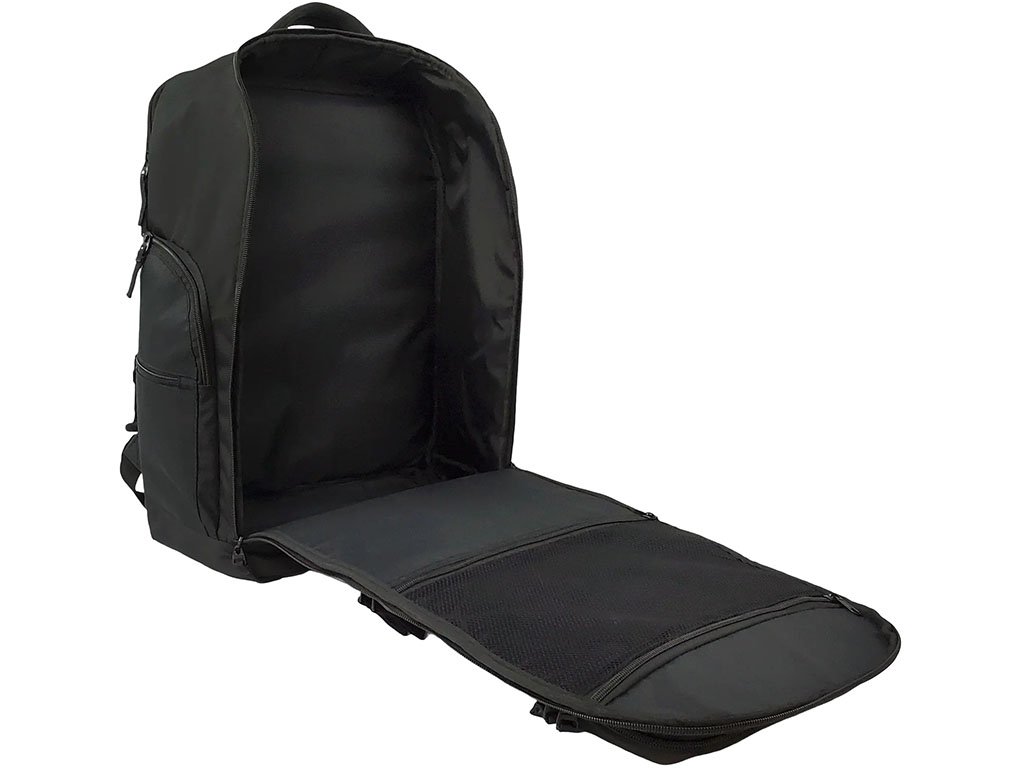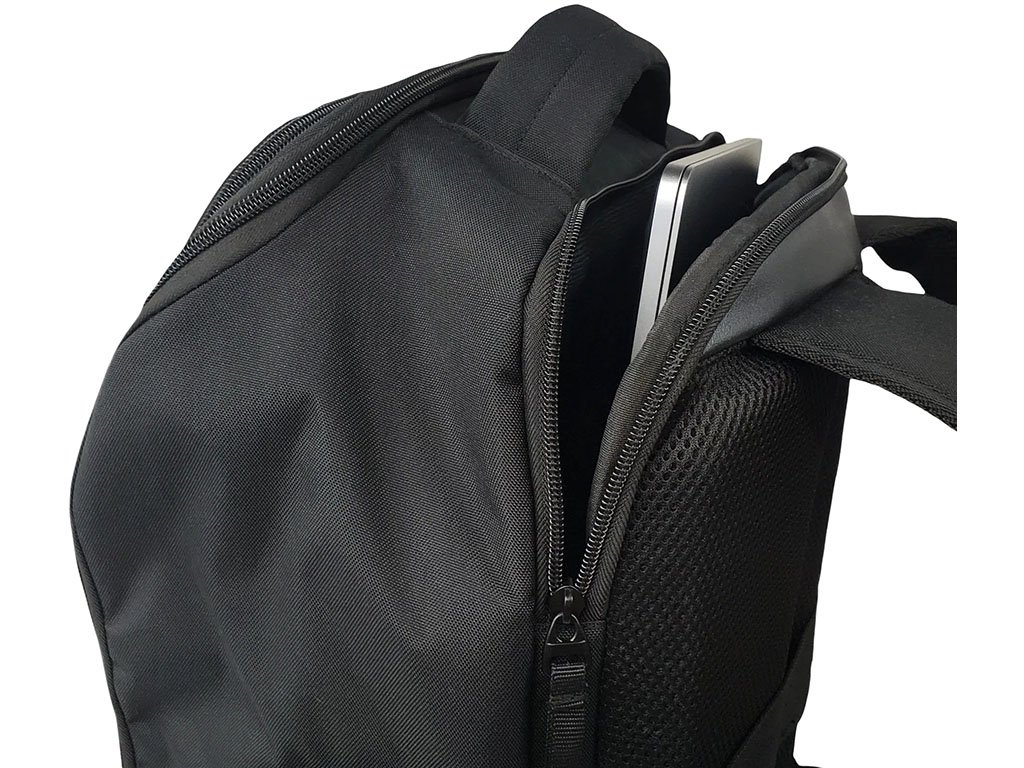 Batoh je zároveň ideální pro cestování. Splňuje rozměry palubního zavazadla do letadla a je vybaven polstrovanou kapsou na notebook s měkkou podšívkou, zesíleným horním madlem a zadním páskem na suchý zip pro upevnění na madlo cestovního kufru.