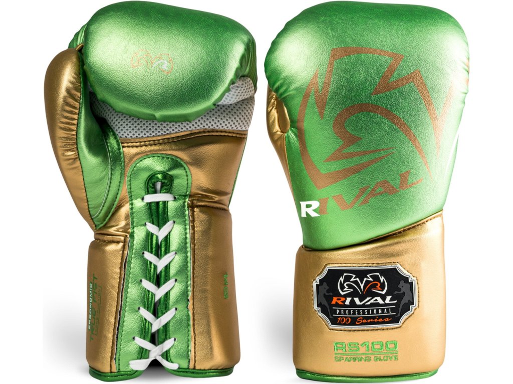 RIVAL RS100 Professional Sparring šněrovací rukavice - zeleno/zlaté