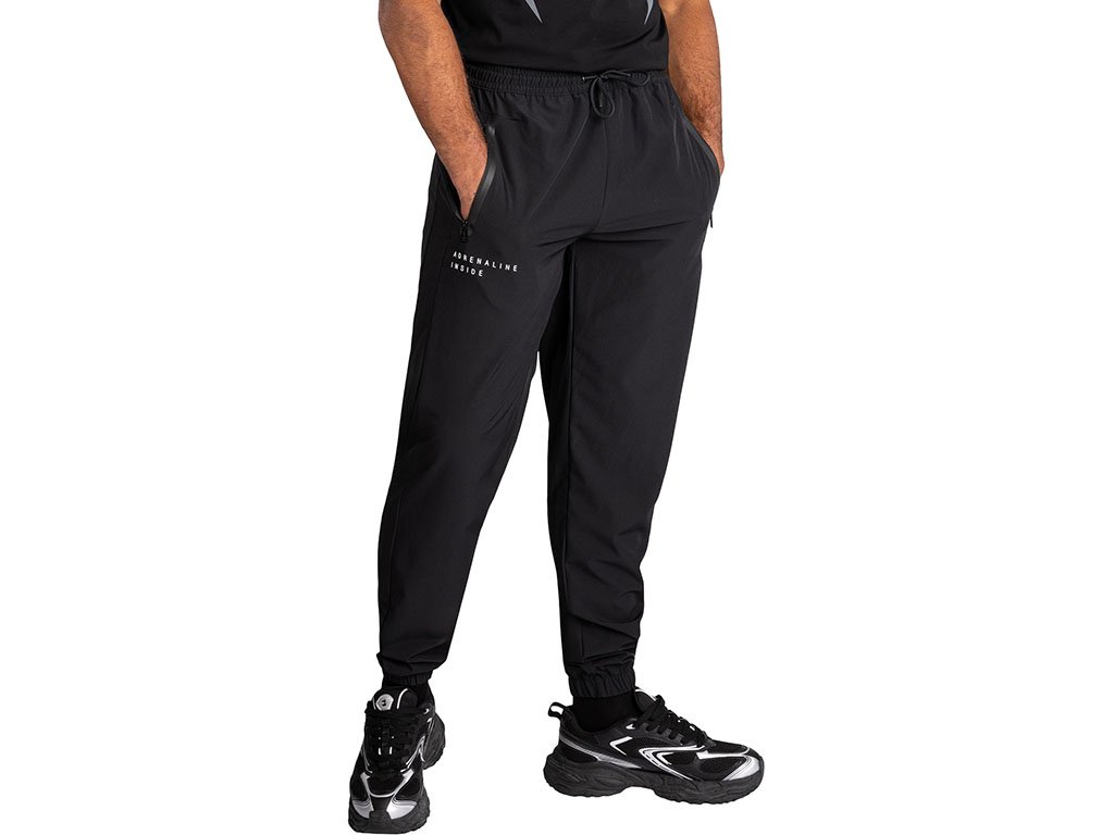 Vlastnosti: Boční kapsy na zip, nastavitelné kotníky, elastický pas, potisk loga