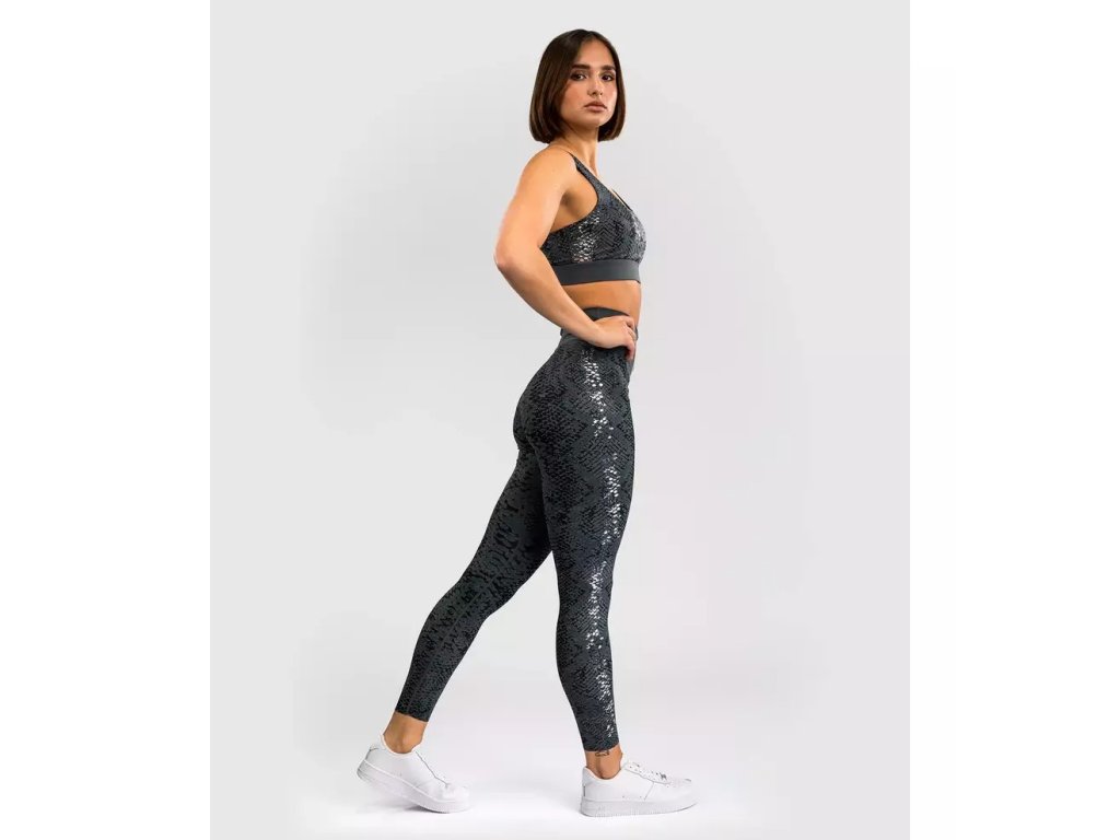 Elegantní barevné provedení Dark Grey s metalickými detaily inspirovanými hadí kůží dodává legínám luxusní vzhled. Dokonale ladí se sportovní podprsenkou a boxerskými rukavicemi Amazonia ze stejné kolekce.