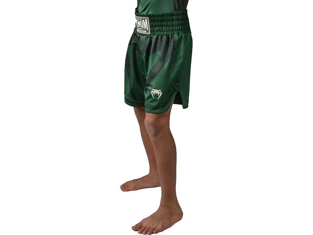 Tradiční elastický pas zajišťuje bezpečné a pohodlné nošení, zatímco boční rozparky zlepšují rozsah pohybu při práci nohou i úderech. Šortky jsou vhodné pro kluky i holky a zdobí je sítotiskové logo Venum.