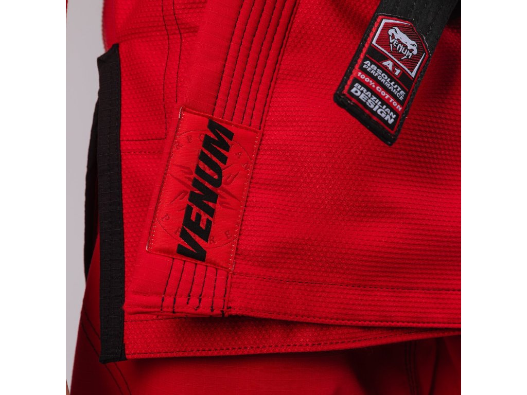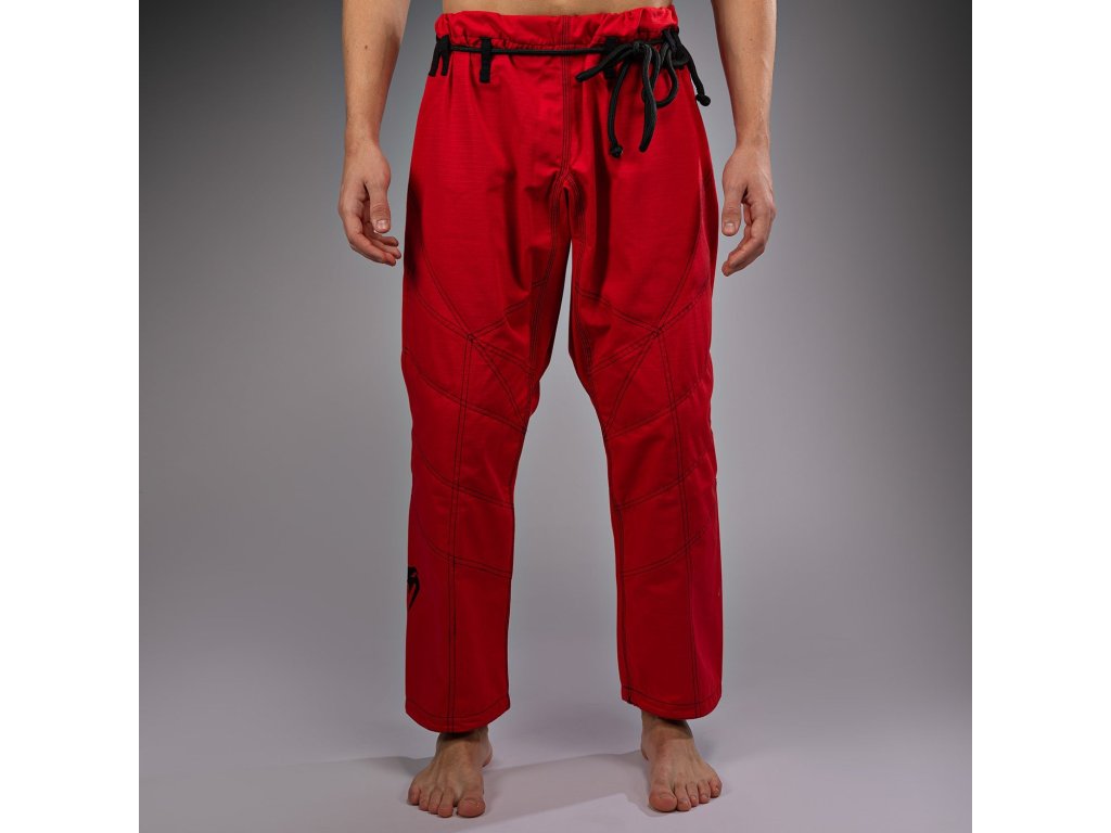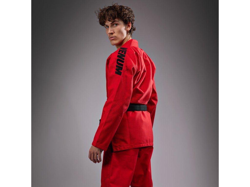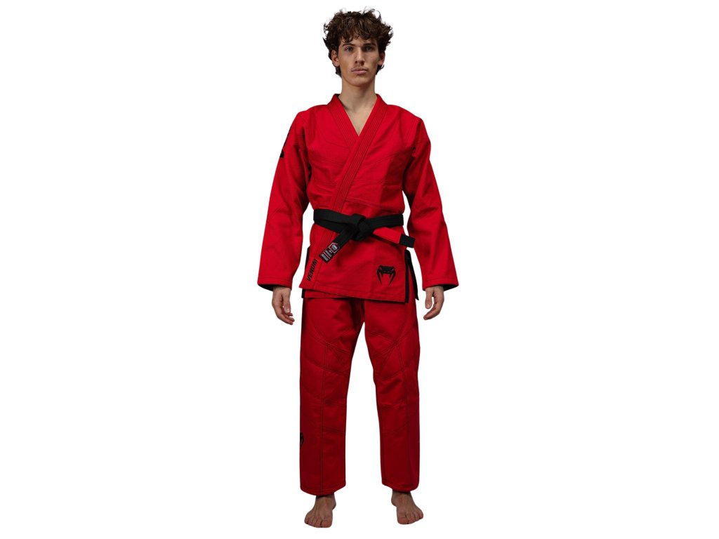 Venum Challenger XT Gi stanovuje standardy pro brazilské jiu-jitsu. Toto kimono je navrženo pro pravidelné praktikující, kteří hledají prodyšné kimono s maximální volností pohybu. Červená bunda je vyrobena z předsrážené 450 gsm Pearl Weave bavlny a obsahuje zesílení na klíčových místech pro větší odolnost. Boční štěrbiny v pase zajišťují neomezený pohyb při grapplingu. Kalhoty jsou z 10 oz ripstop bavlny se zesílenými koleny, rozkrokem a kotníky. Výrazné logo Venum Fangs zdobí ramena, pas a kotníky. Kimono splňuje standardy IBJJF pro soutěže.
