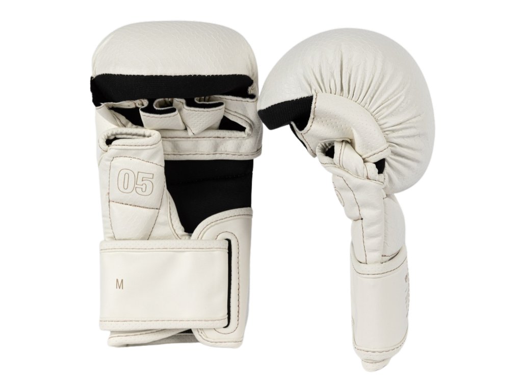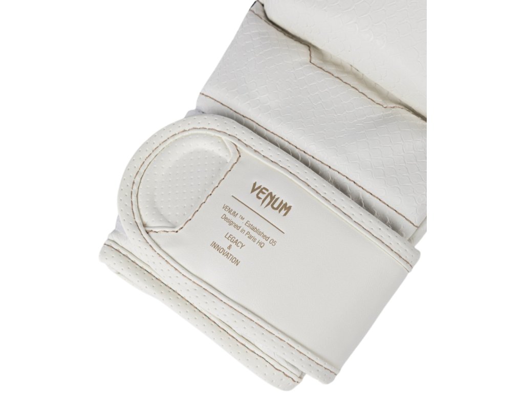Vnitřní část z neoprenu zajišťuje odvod potu a jistý úchop během grapplingu. Béžové prošívání sleduje anatomický tvar rukavice a vytváří jemný kontrastní efekt. Texturovaný povrch ve stylu "šupin" (scales) je připomínkou rychlosti a síly — přesně toho, co značka Venum symbolizuje.