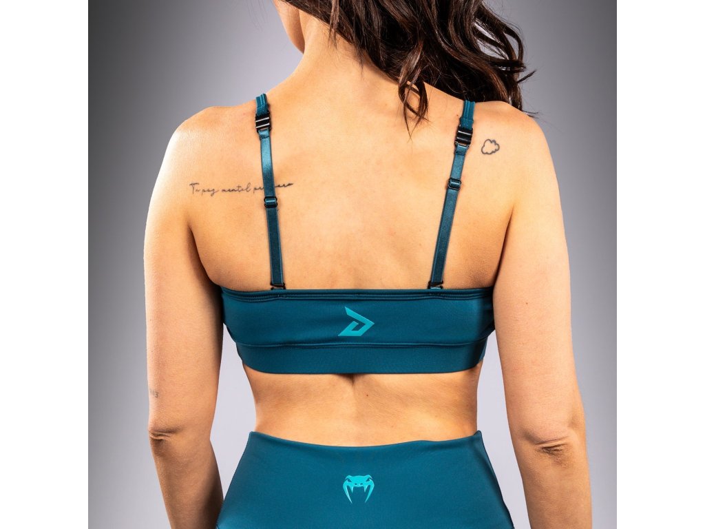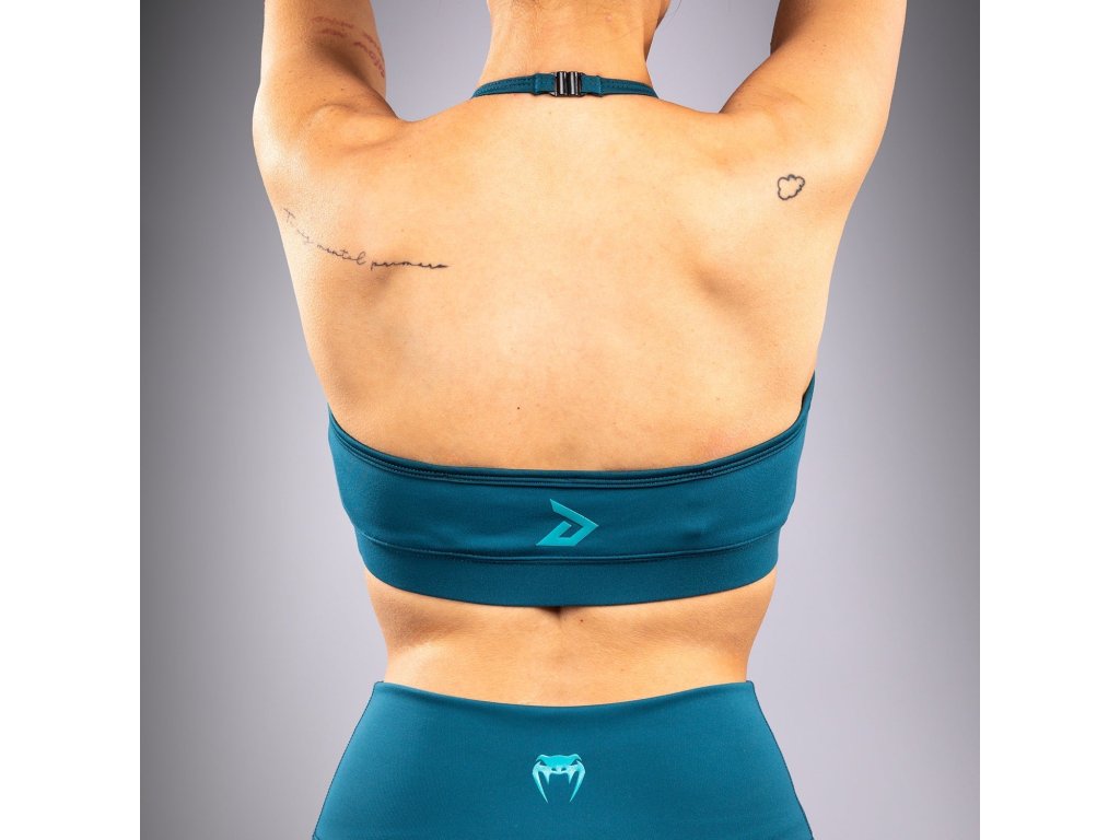 Excelence je odvážná, rychlá a barevná—přesně tyto hodnoty sdílejí Venum a Demi a odráží je i dámská sportovní podprsenka Venum x Demi. V působivém odstínu Azur Blue nabízí tato podprsenka tři způsoby nošení ramínek: kolem krku, křížem na zádech nebo klasicky rovně. Díky tomu si můžete přizpůsobit podporu i pohodlí podle svých potřeb.