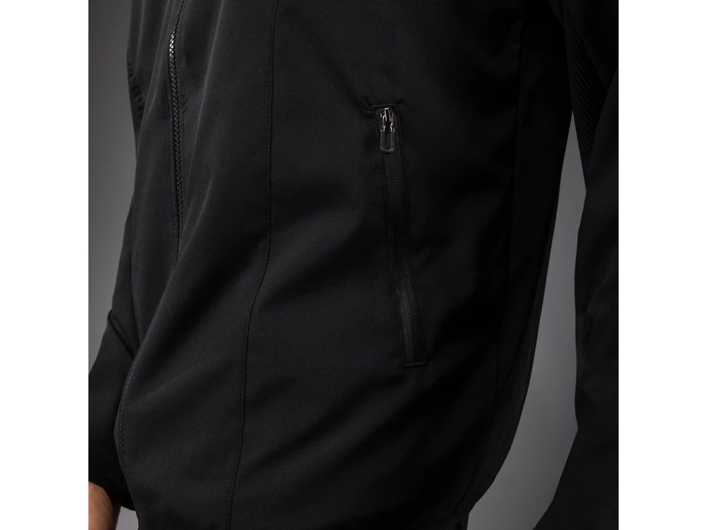 Vyrobena z lehké výkonné směsi tkanin (88% polyester/12% elastan, 76% nylon/24% elastan, 100% polyester) nabízí pohodlí, flexibilitu a odolnost. Kapuce se stahovací šňůrkou poskytuje nastavitelnou ochranu, zatímco zipované kapsy uchovají vaše věci bezpečně. Elastické manžety a lem zajistí pevné uchycení a udrží teplo, ideální pro vrstvení přes tréninkové oblečení nebo kombinaci se streetwear outfity.